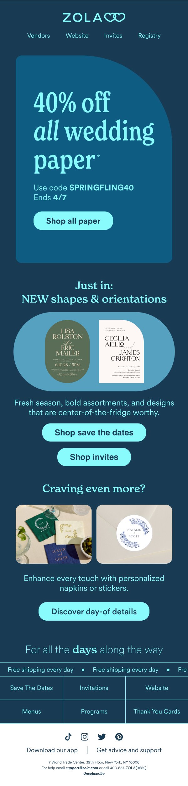 zola helps couples prepare for all their special days together. as a freelance senior designer, i design email and push content, mainly for zola registry affiliates.